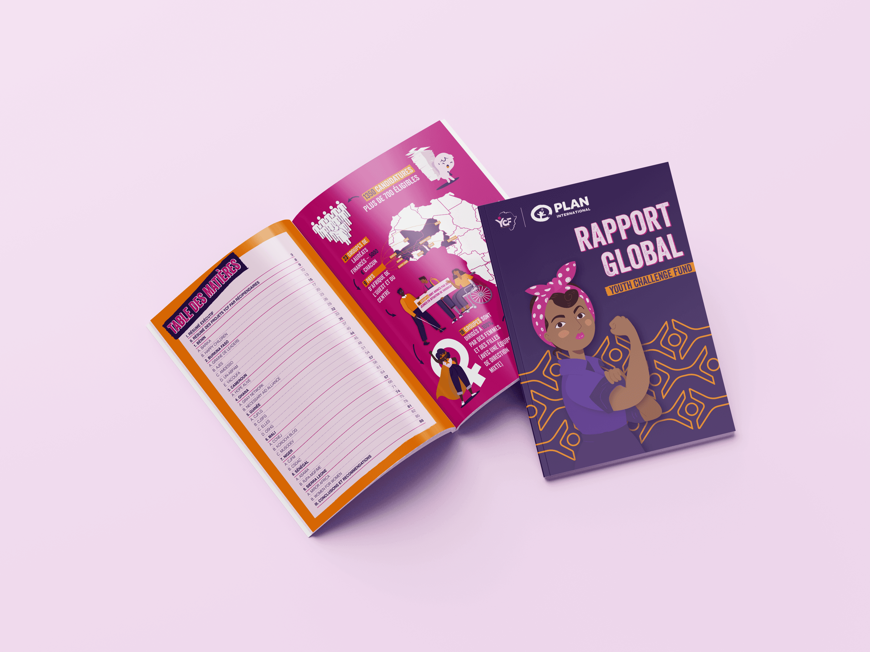 Le violet est une couleur très utile dans l’identité visuelle de YCF, en ce sens qu’il symbolise le pouvoir. Le rose représente la féminité, la sensibilité et l’empathie. C’est une couleur douce par nature. L’orange est la couleur de la créativité, de la jeunesse et de l’enthousiasme Le bleu est la couleur du calme, de la confiance et de l’intelligence.
